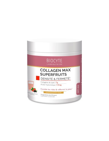 Biocyte Collagen Max Superfruits is a food supplement that mitigates the signs of aging, recommended from 35 years. For skin with wrinkles and loss of firmness. Ideal for those looking for highly concentrated anti-ageing products.