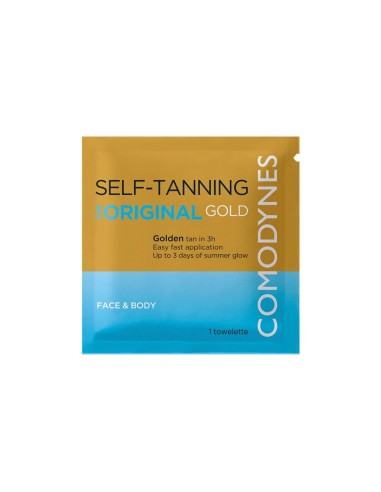 Comodynes Self-Tanning Original 1 Sachet is a 100% cotton towel that is easy and quick to apply. Formulated with a combination of active ingredients: DHA Plus and 100% natural fibers for a tanning action.