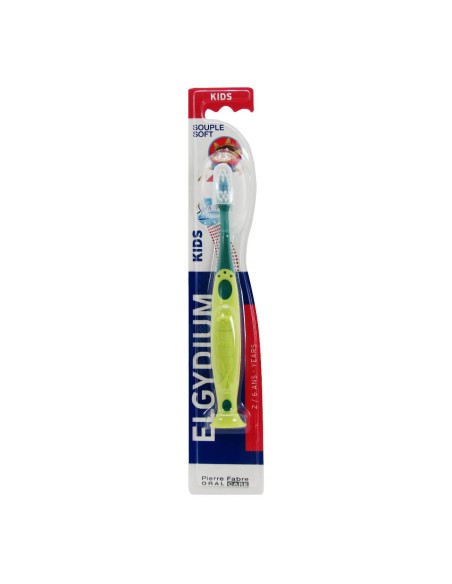 Elgydium Kids it's a soft toothbrush for the dental hygiene of kids sentitive teeth and gums. With a small head and ergonomic and colorfull handle.
