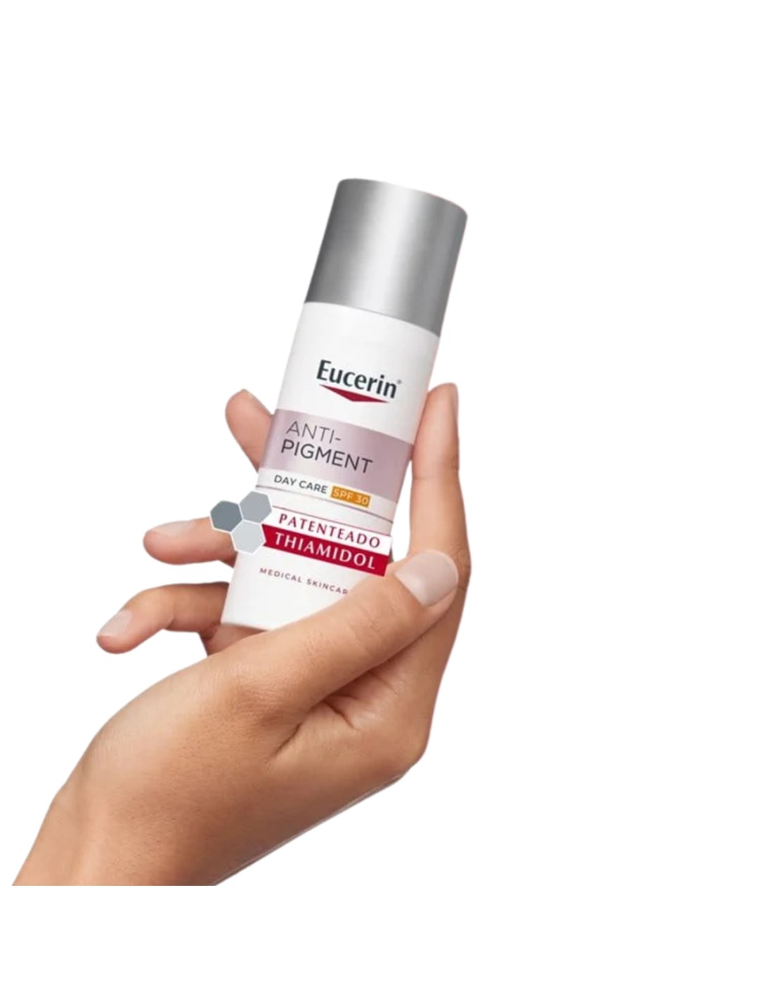 The Eucerin Anti-Pigment Day Cream SPF30 is suitable for all skin types, including sensitive skin, that have hyperpigmentation, dark spots, or uneven skin tone. This daily care effectively helps reduce existing spots and prevent their reappearance, providing a more uniform and luminous complexion. Additionally, it offers broad-spectrum sun protection against UVA and UVB rays, preventing the appearance of new sun-induced spots.