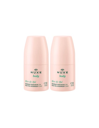Nuxe Body Rêve de Thé Refreshing deodorizer strong> is a deodorant roll-on that protects and refreshes the skin. Prevents the bad odors for 24h. It provides throughout the day a pleasant feeling of freshness, while neutralizing the odors. It does not set stains. Vegan. With 97% of ingredients of natural origin. For all skin types. Promotional pack. P> Nuxe Body Rêve de Thé Refreshing deodorizing strong> It has a light texture with Roll-on applicator with a revitalizing aroma and Aromatic green tea. Formulated with a trio of active principles that adapt to the needs of each skin and green tea extract with moisturizing action. P> Fresh maxillas and bad odors prevented. Sensation of freshness. P> Apply Nuxe Body Rêve de Thé Refreshing deodorizer Strong>, daily, on the skin of the armpits, clean and dry. p> Properties h3>