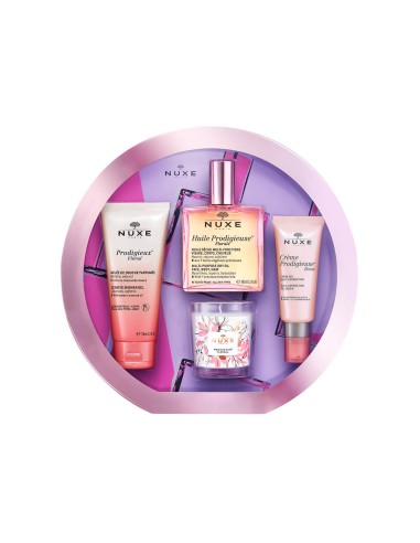Nuxe Prodigiously Floral Coffret is a coffret with four products from the Prodigieuse line with the intoxicating Florale fragrance. Contains: Nuxe Huile Prodigieuse Florale 100ml, Nuxe Prodigieux Floral Perfumed Shower Gel 100ml, Nuxe Crème Prodigieuse Boost Multi-Correction Gel Cream 40ml and Prodigieux Floral Candle 70g.
