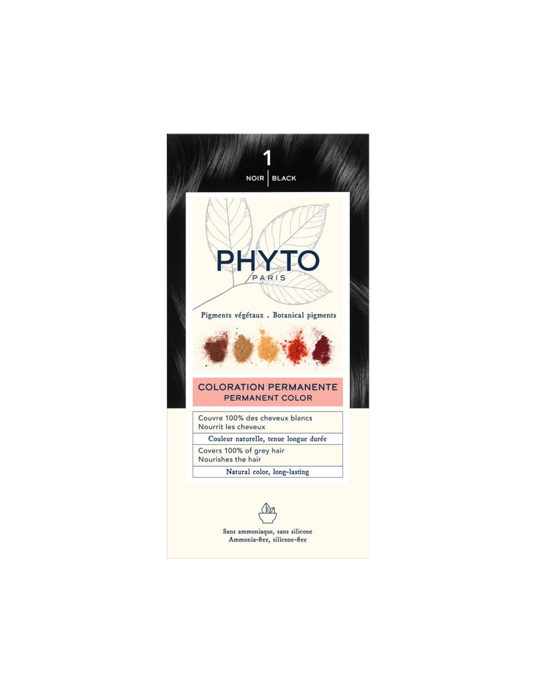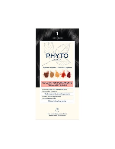 Phyto Color Permanent Color is a permanent hair color that provides an intense shine and coverage of whites, without damaging the hair and scalp. Made with vegetable pigments, it covers 100% of white hair since the first application and ensures long-lasting color maintenance. Provides an intense and luminous color of long duration. Respects hair and scalp and minimizes the risk of allergies. Without ammonia, PPD or resorcin. Ideal for sensitive scalp. Color: black.