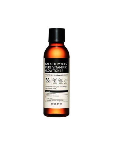 Some By Mi Galactomyces Pure Vitamin C Glow Toner is a rejuvenating multi-function tonic with pure vitamin C . Helps lighten skin hyperpigmentation, brighten intensely, moisturize and protect the face skin from environmental damage. Recovers the natural luminosity of the skin and keeps the skin more uniform (lightens blemishes and helps to reduce acne). Powerful antioxidant . Dermatologically tested. For all skin types, including sensitive skin. No artificial fragrances and colors, parabens, sulfates, animal products, mineral oil and silicone.