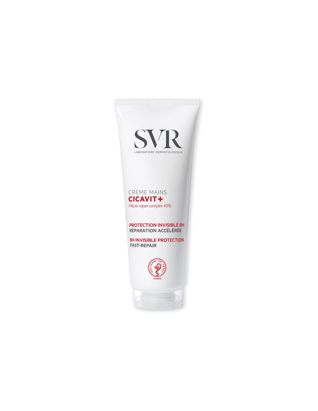 SVR Cicavit Crème Mains is a recommended care for those looking to repair and protect hands without having to interrupt work or activity: housework or manual work, even in varying temperatures and times of stress. Suitable for people who suffer from dermatitis (flaking, chapped skin,...) and need a daily care to soothe irritation with long-lasting results. Perfect for extremely dry and damaged hands in order to improve skin quality and soothe discomfort. Deeply nourishes and repairs hand skin and provides invisible protection for 8 hours. Protects hands against external aggressions: friction, washing and exposure to chemicals.