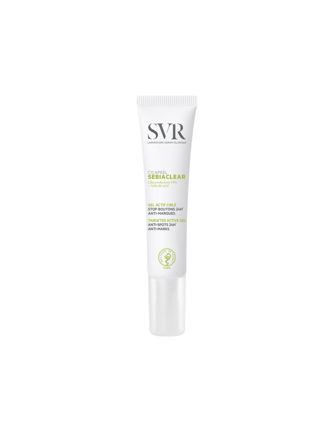 SVR Sebiaclear Cicapeel is an anti-imperfection and anti-marks gel that helps eliminate and attenuate residual imperfections and marks. It dries and eliminates pimples and blackheads. Localised care for imperfections that prevents the formation of marks and scars. Oil-free. For oily, acne-prone skin.