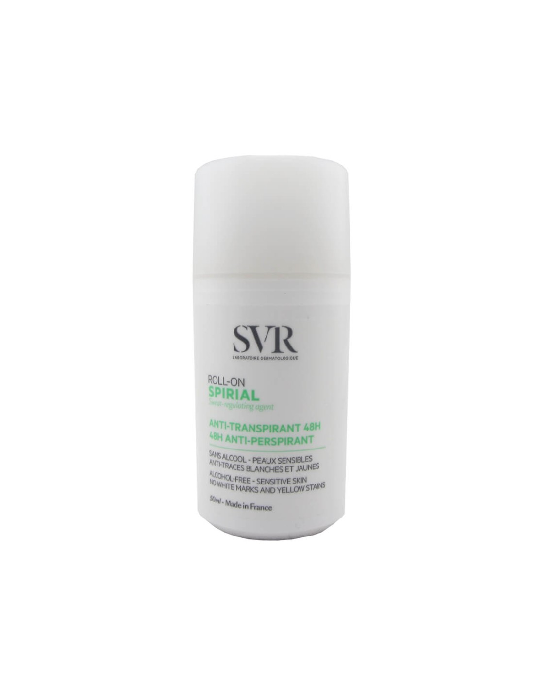 SVR Spirial Roll-On has a lightweight texture that dries quickly. Formulated with aluminium chlorhydroxide - antiperspirant action, helps decrease the production of sweat glands, absorbent microspheres - deodorising and moisture absorbing action that causes bad odours and allantoin - soothing and cooling action.