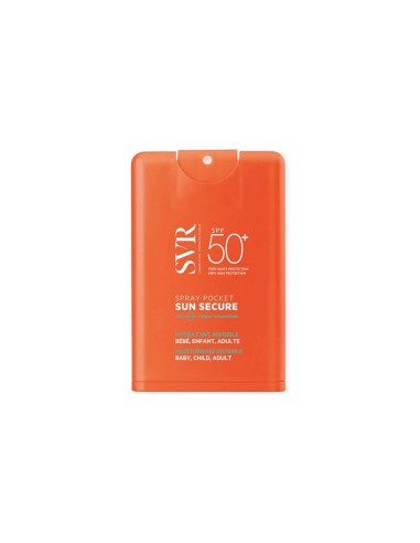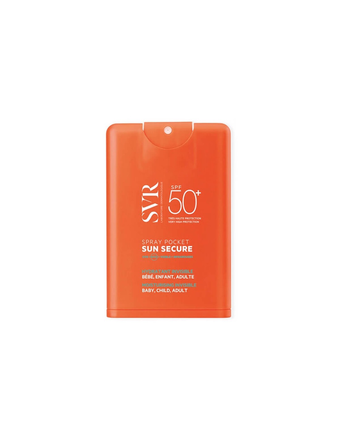 SVR Sun Secure Spray Pocket SPF50 is an invisible moisturizing spray in pocket format with very high photoprotection. Recommended for sun hypersensitive skin, ideal for face and exposed sensitive areas such as nose, cheeks, ears and hands. Suitable for use on babies, children and adults.
