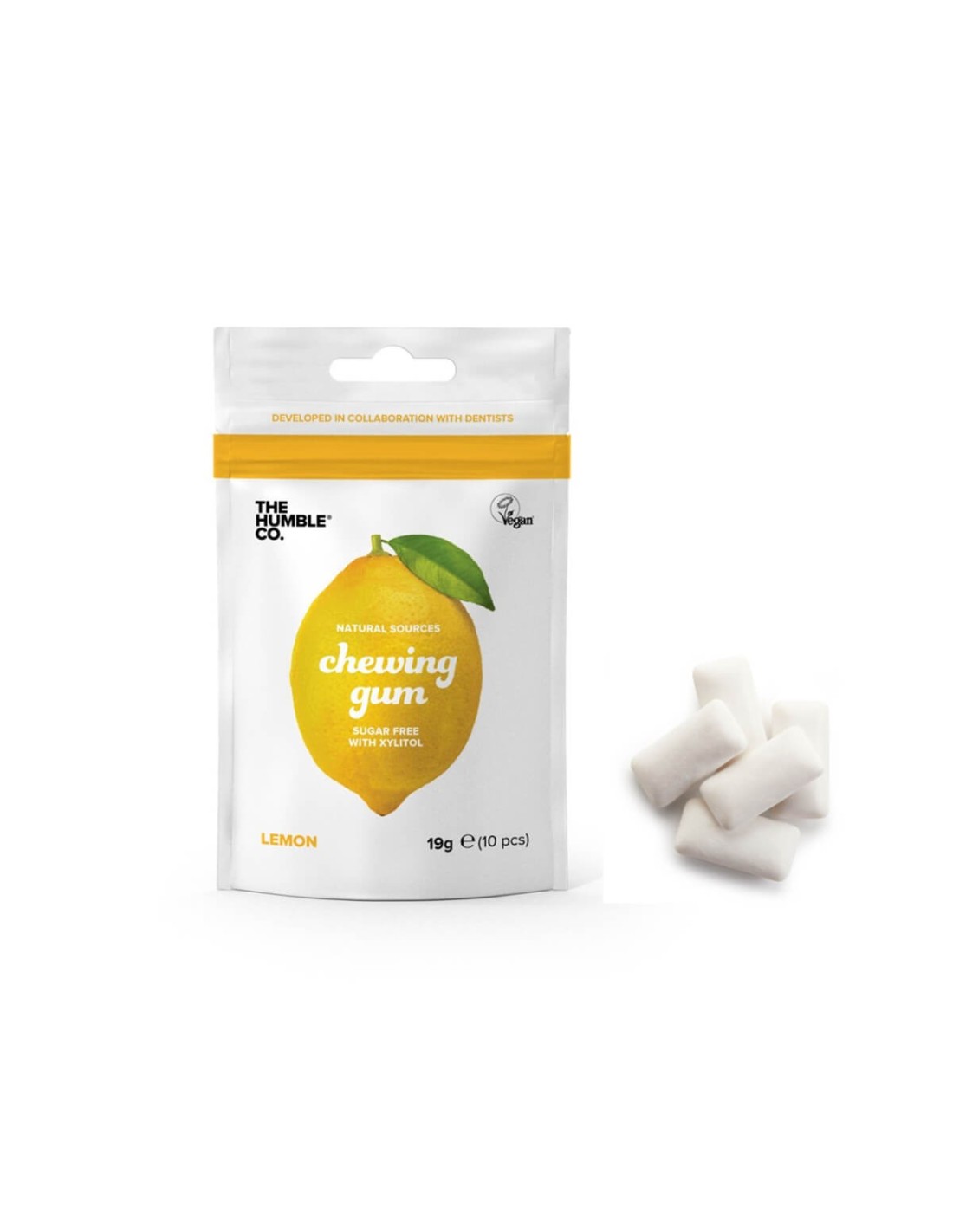 THE HUMBLE CO. NATURAL ELASTIC PASTILE WITHOUT SUGAR STRONG > They are natural elastic inserts made only based on natural ingredients and with a natural gum base. They are naturally good for teeth and breath, help in the prevention of cavities. Elaborated only with natural ingredients. Low calories. Vegan. Biodegradable packaging. Alternative to conventional elastic pellets made with plastic gum. Lemon flavor. H3> Properties h3> THE HUMBLE CO. NATURAL PASTILE NATURAL DESSIAN STRONG> DO NOT Contains: Sugar, Aspartame and Artificial Ingredients. Formulated with natural ingredients and with a natural gum base of the Sapodilla tree and natural xylitol. P> Mastigar The HUMBLE Co. Natural elastic pellet without sugar strong> Shortly after eating, or whenever necessary. P>